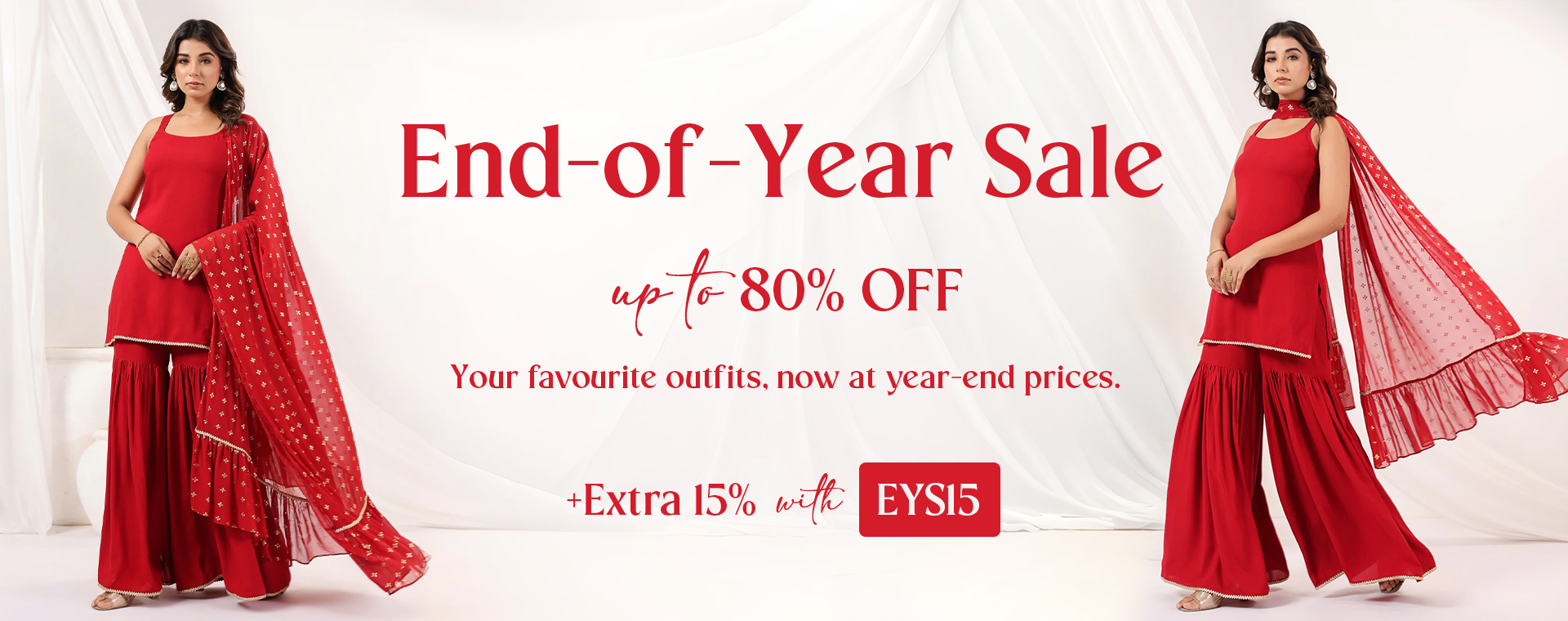 Strut away in panache with the dress of your liking with our latest collection of premium Ethnic Dresses. Some of the prominent styles we have curated for you are off-shoulder, fit-n-flare, v-neck, knee-length dresses, etc, that keep your style game high!