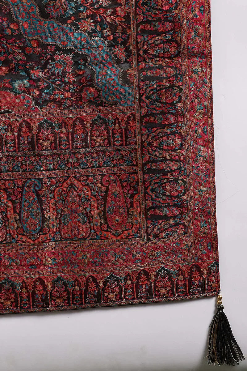 Black-Silk-Blend-Solid-Woven-Design-Straight-Kurta-Trousers-With-Dupatta
