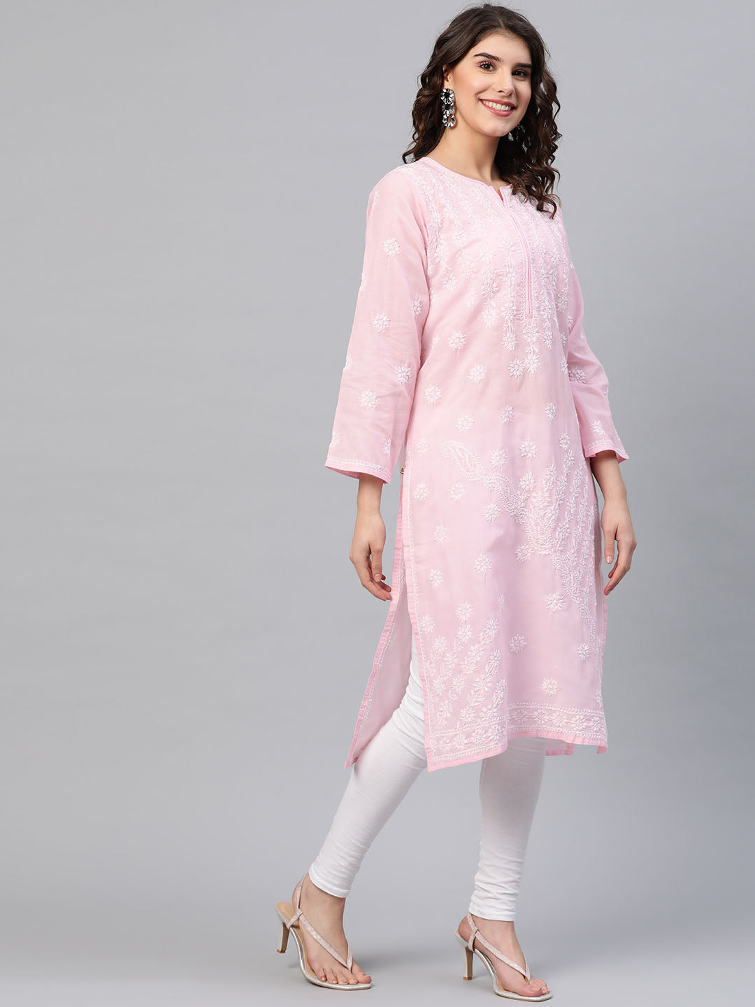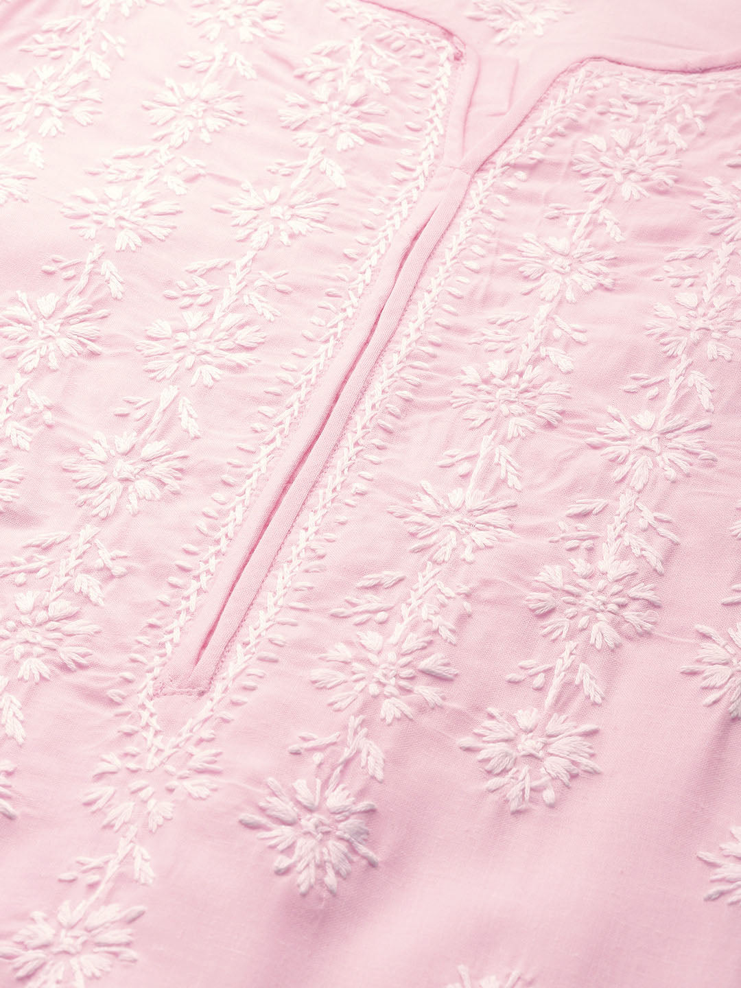 Hand Embroidered Lucknowi Chikankari Pink & White Cotton Kurta