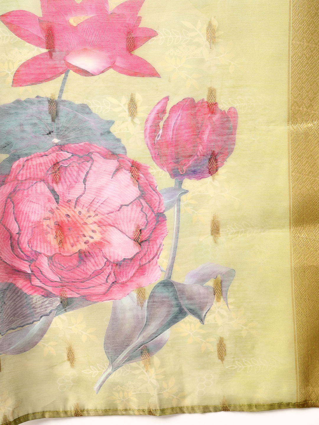 This Straight Cotton Blend Kurta Features Sequin Embroidery On The Yoke With Lace Accents. Styled With A Solid Pant Having A Fully Elasticated Waist And A Printed Chanderi Dupatta, Making It Perfect For Festive Occasions. Kurta Length: 45" | Pant Length: 38" | Dupatta: 2.25 M Top: Cotton Blend | Pant: Cotton Blend | Dupatta: Printed Poly Chanderi