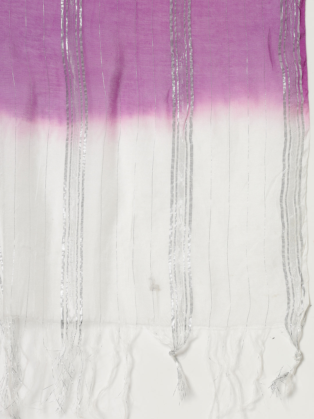 Chic And Lightweight Rayon Kurta Set In Purple Floral Print. Features Adjustable Shoulder Straps With Border Detailing. Comes With A Solid Elasticated Pant And Lehariya Printed Chiffon Dupatta With Lace Finish. Kurta Length: 45" | Pant Length: 38" | Dupatta Length: 2.30 M