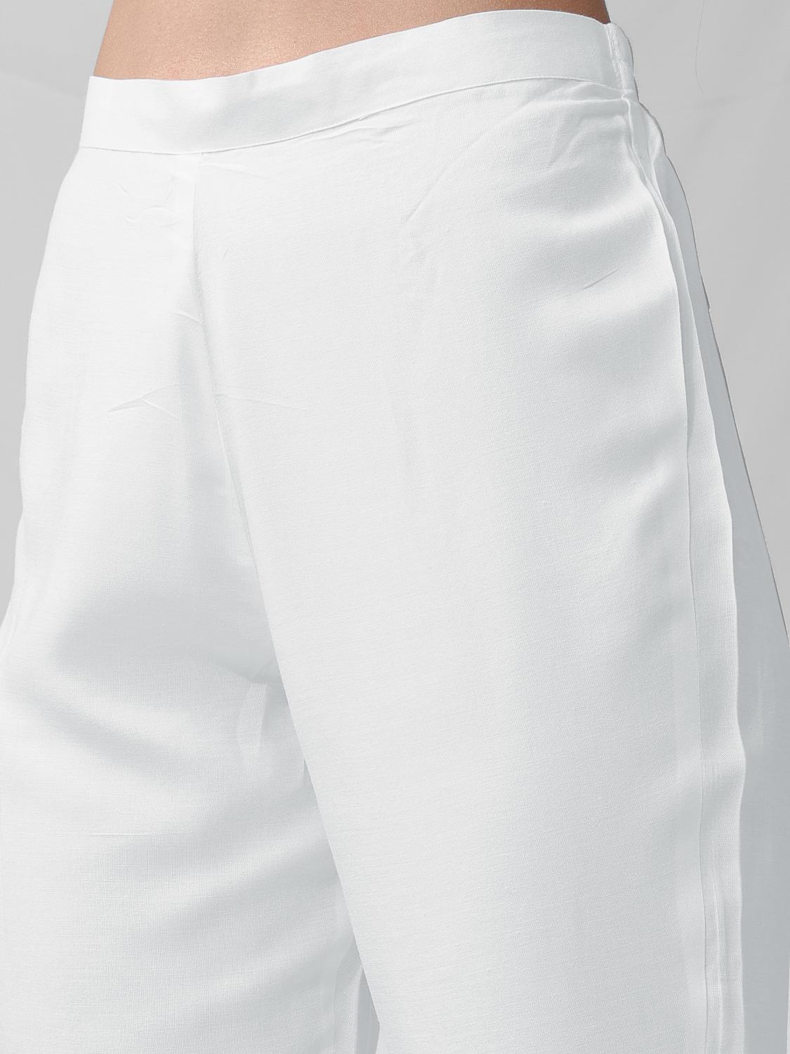 White Rayon Embroidered Gathered 3-Piece Kurta Set