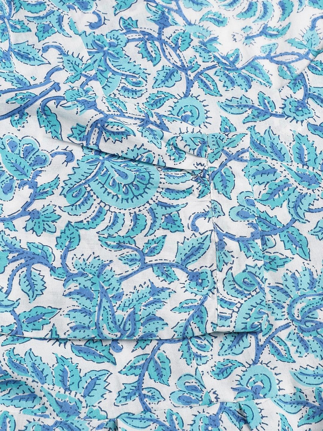 White Cotton Floral Printed Peplum Co-Ords Sets