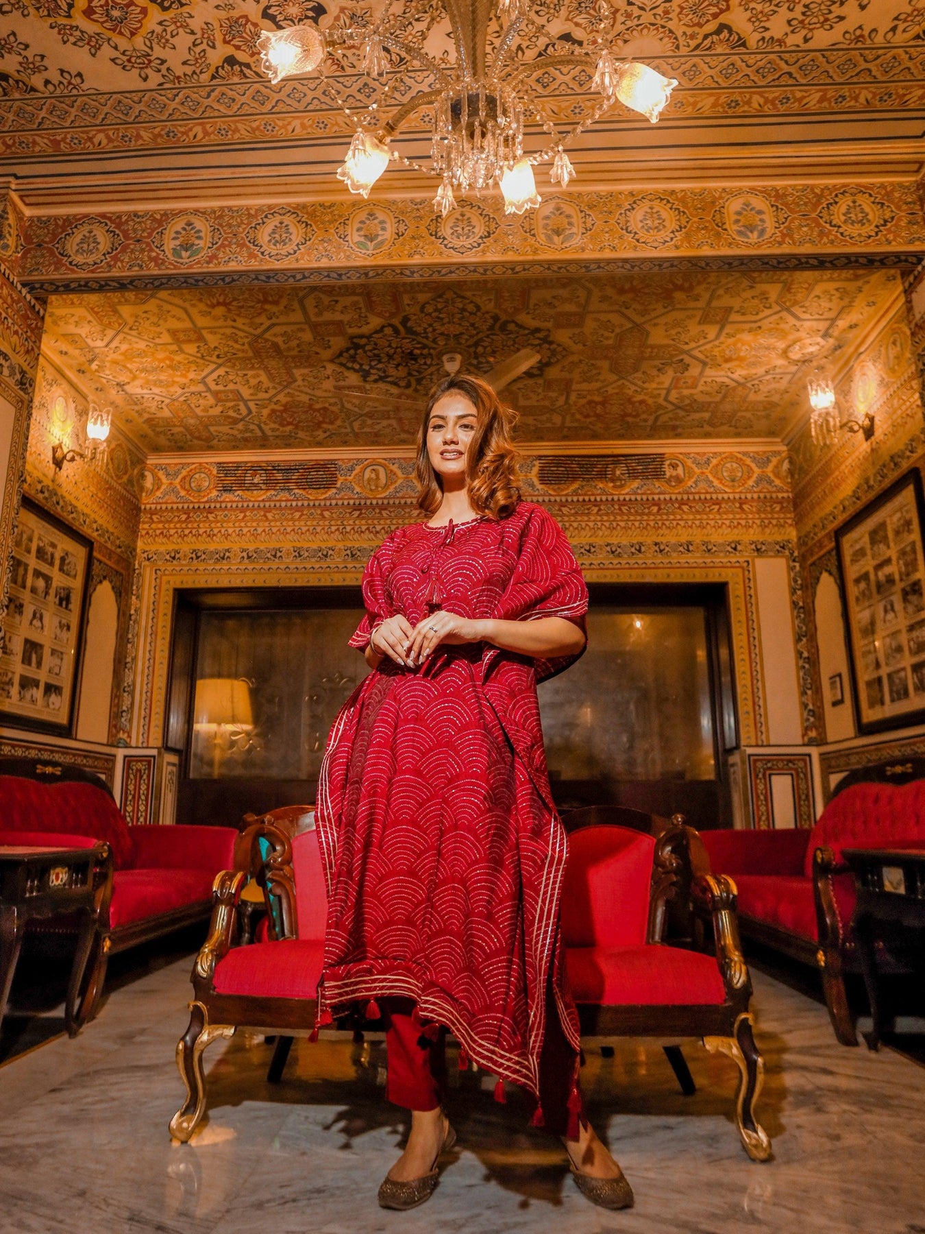 Maroon-Rayon-Bandhej-Kaftan-Pant-Set