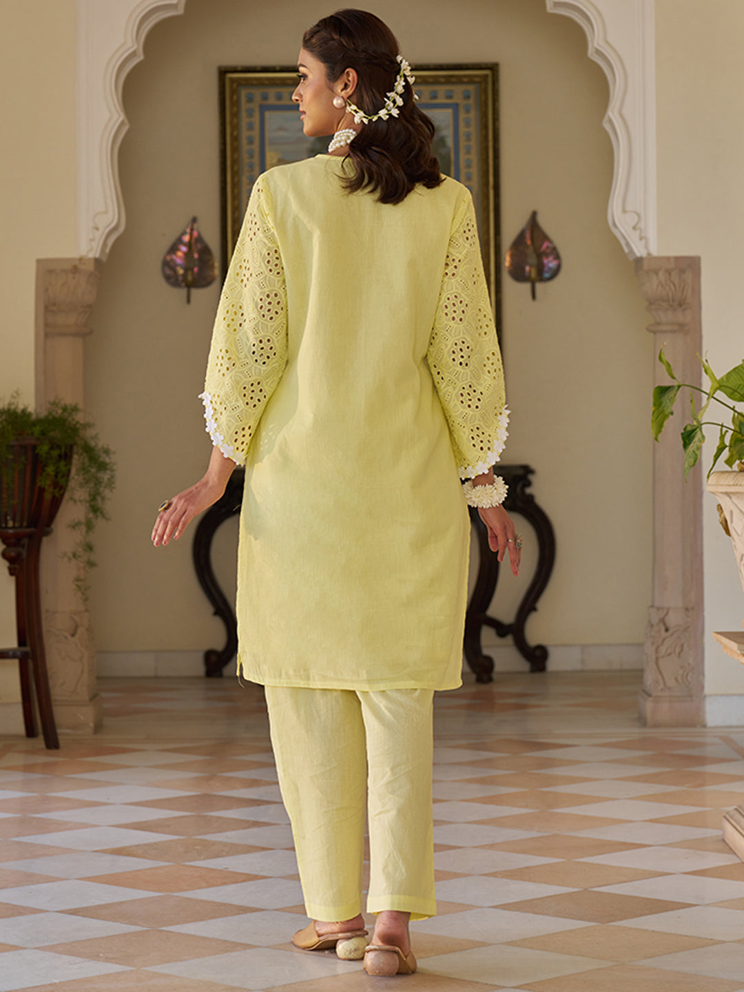 Crafted In Pure Cotton, This Yellow Kurta Set Stands Out With Delicate Embroidery And A Crisp, Clean Silhouette. Ideal For Warm-Weather Wear, It Blends Simplicity With Subtle Charm For A Naturally Elegant Look.