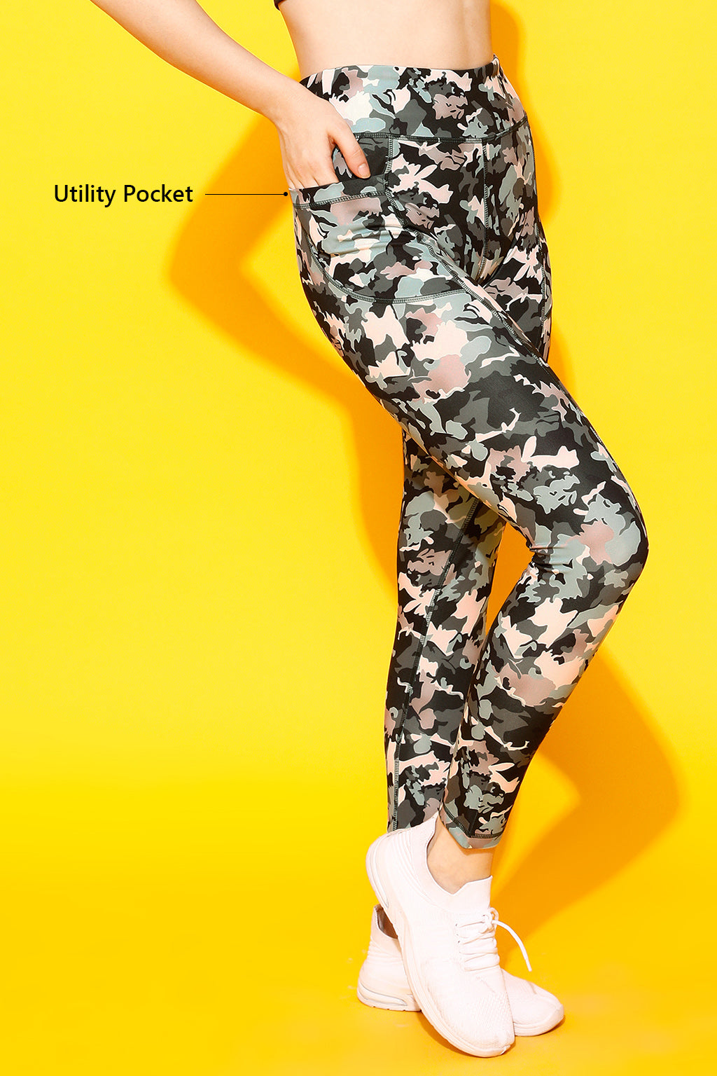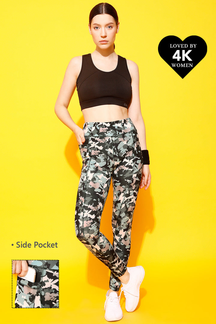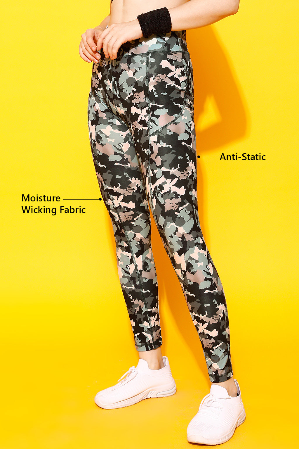 Grey High Waist Active Tights Crafted With Soft Poly-Spandex Fabric.Engineered With 4-Way Stretch Fabric That Moves With Your Movement.Quick Dry Technology Helps Wick Away Sweat During An Intense Workout Routine, Keeping You Cool Dry.Crafted With Anti-Static Property To Stop The Tights From Clinging To Your Body.Has Great Elasticity, Is Resistant To Perspiration, And Is Comfortable.Has Broad Elastic Enclosed In A Soft Fabric For Extra Tummy Support.Designed With Camouflage Print All Over.Has Pocket On One Side.Maximises Flexibility, Mobility Performance.Perfect For Cycling, Running, Zumba, Etc.