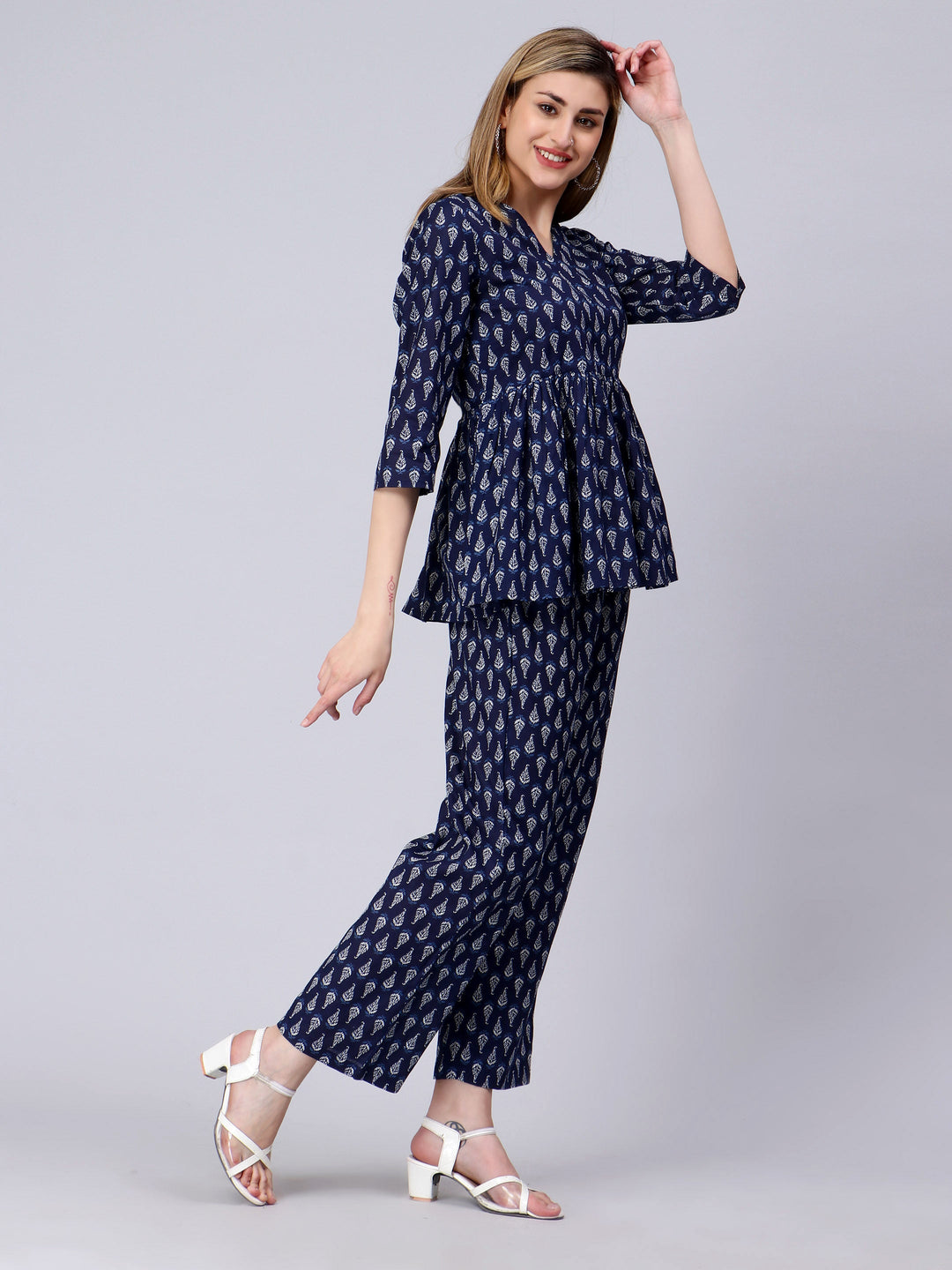 Unwind in style with this floral-printed co-ord set, crafted from 100% pure cotton for a soft and breathable feel. Designed for ultimate comfort, it features a chic V-neckline, 3/4th regular sleeves, and practical side pockets in the pants. Perfect for a cozy night’s sleep or lounging in effortless elegance!