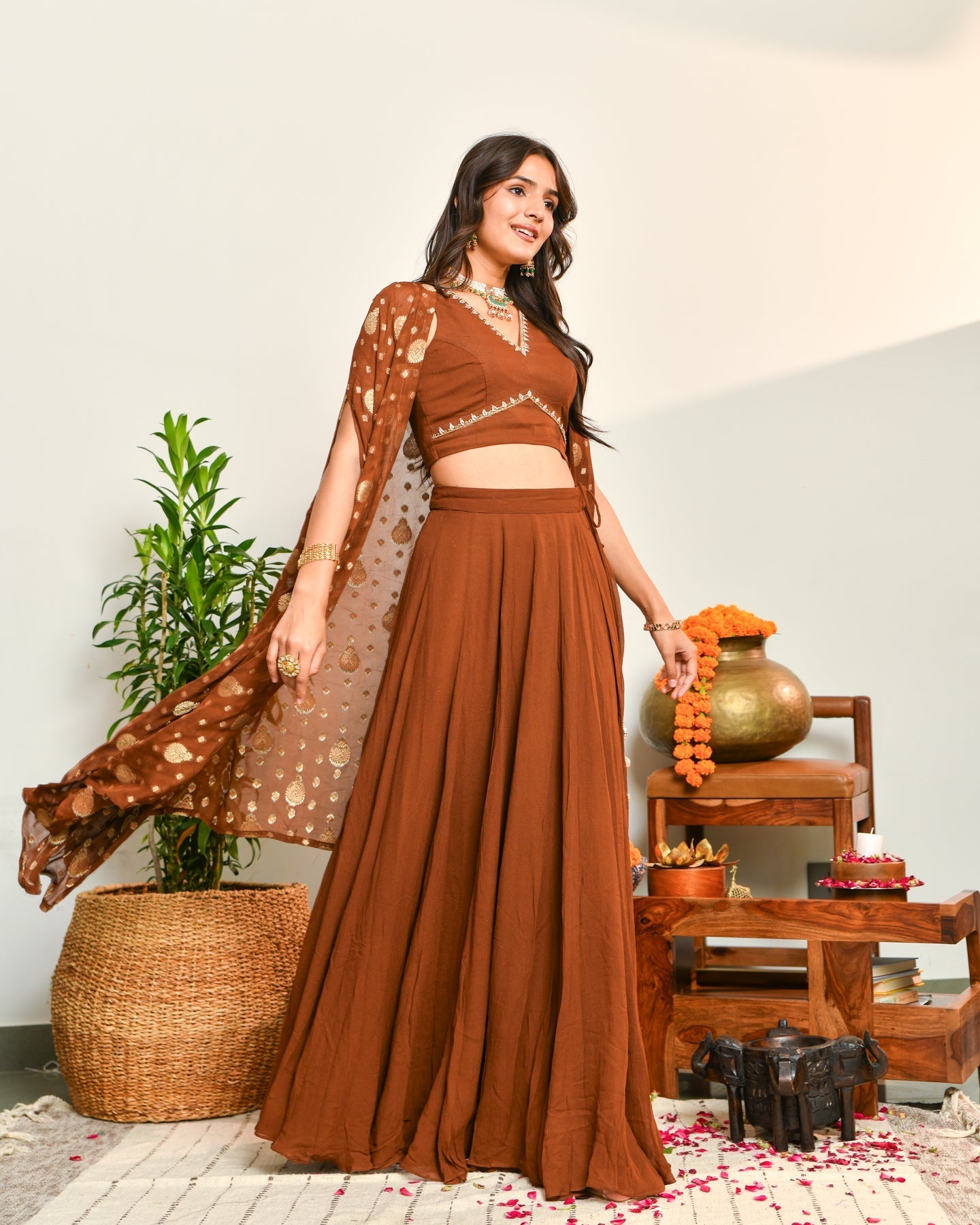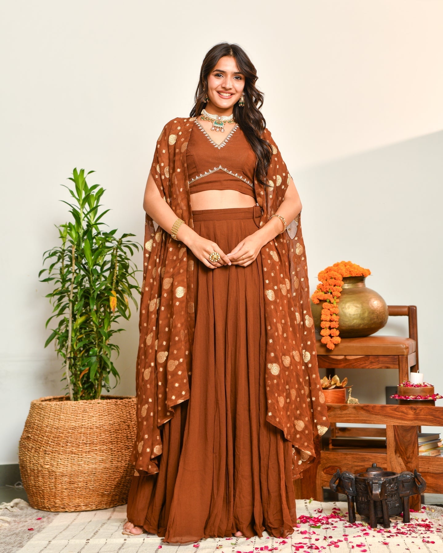 Rich Brown Color With Detailed Embroidery For Timeless Festive Charm