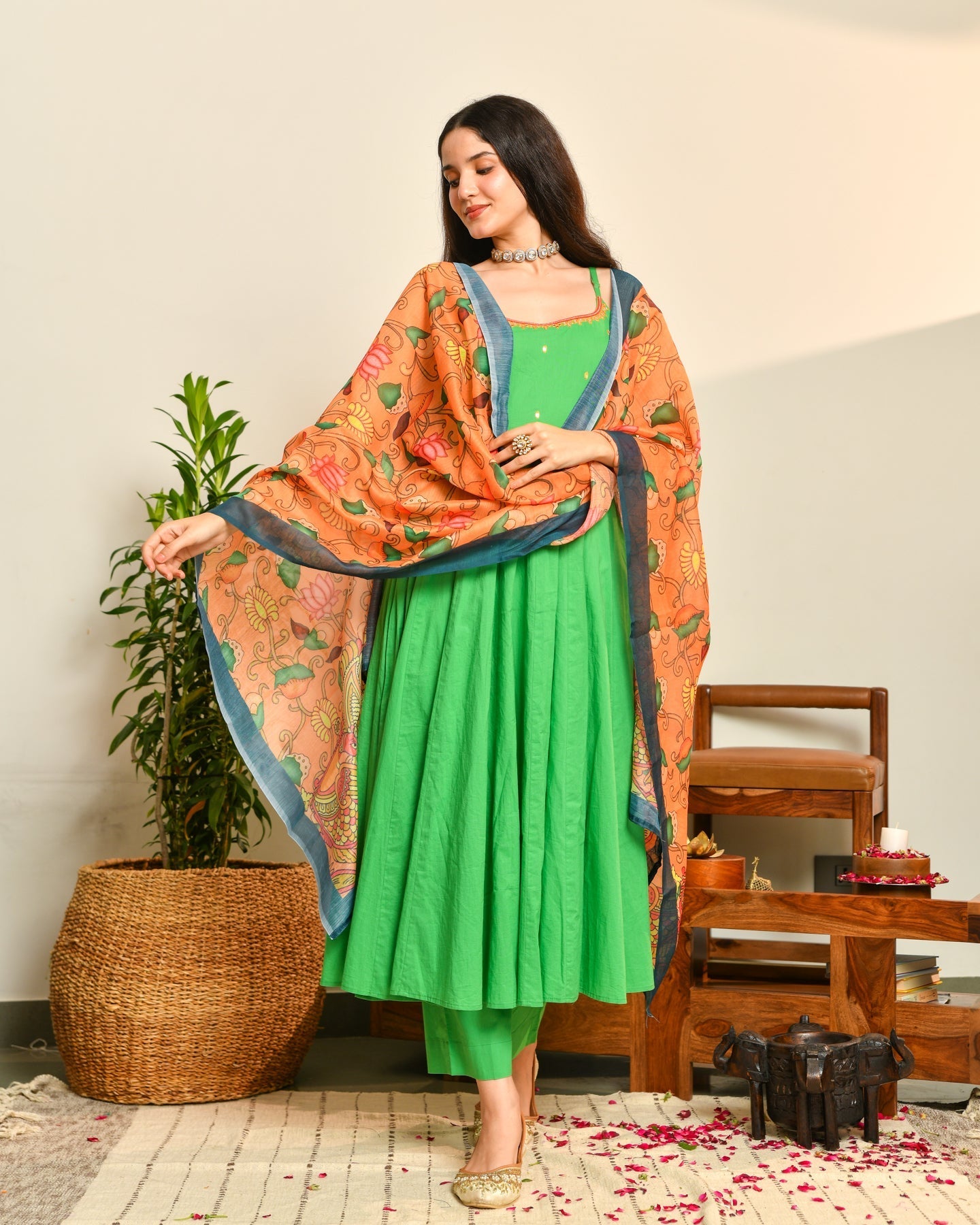 Green-Cotton-Anarkali-3-Piece-Set