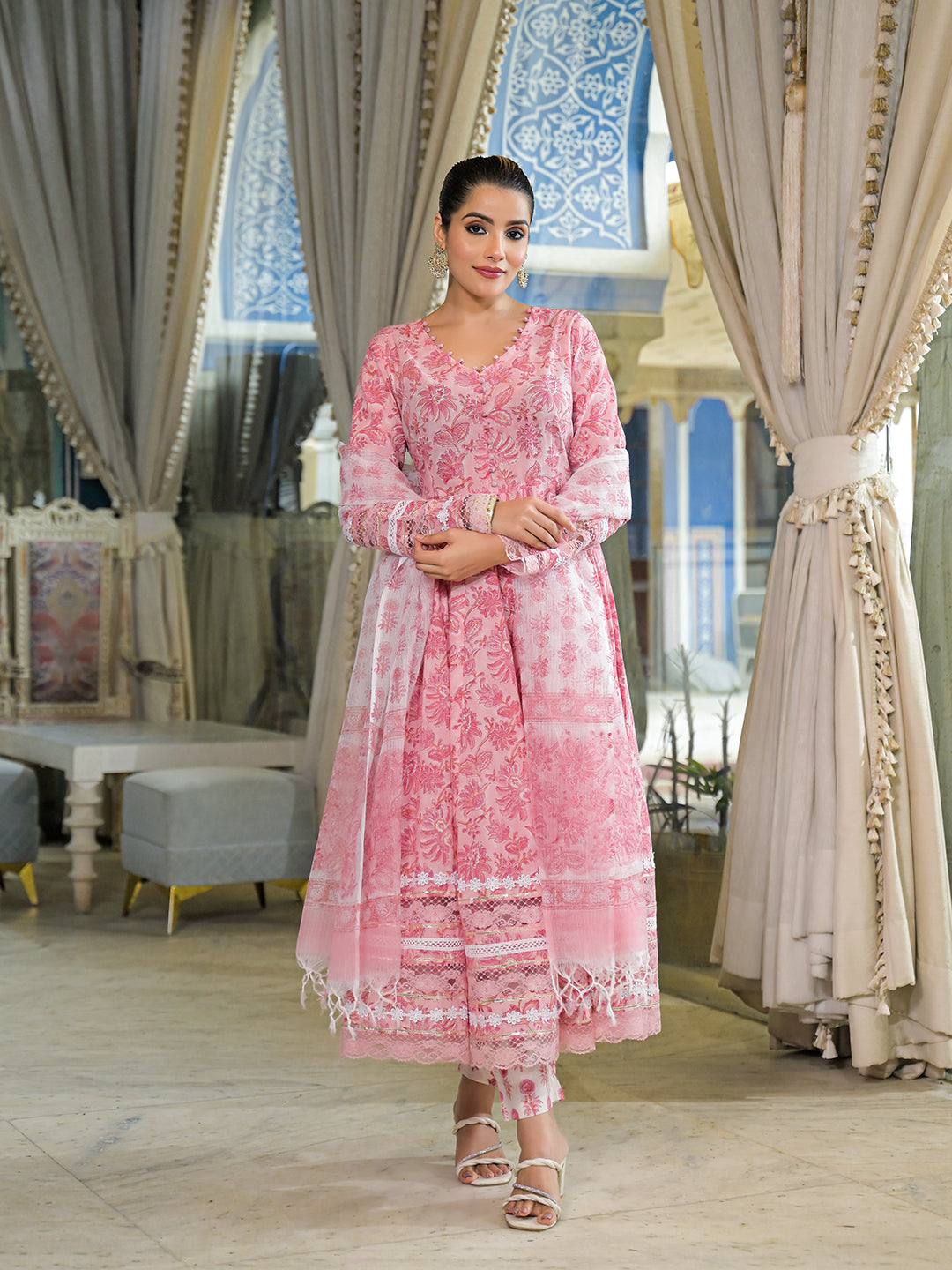 Pink-Cotton-Hand-Block-Anarkali-3-Piece-Kurta-Set
