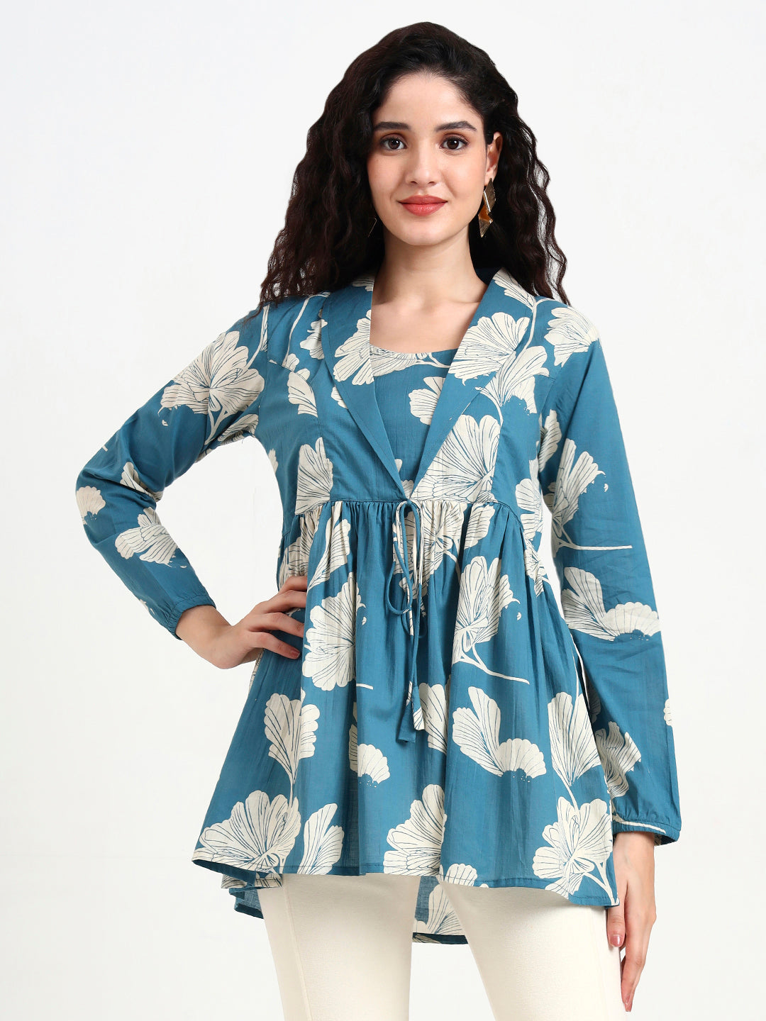 Upgrade your wardrobe with our Teal Blue Floral Print Cotton Top! Featuring a beautiful floral design and made with comfortable cotton fabric, this top is perfect for any occasion. Shop now and elevate your fashion game!