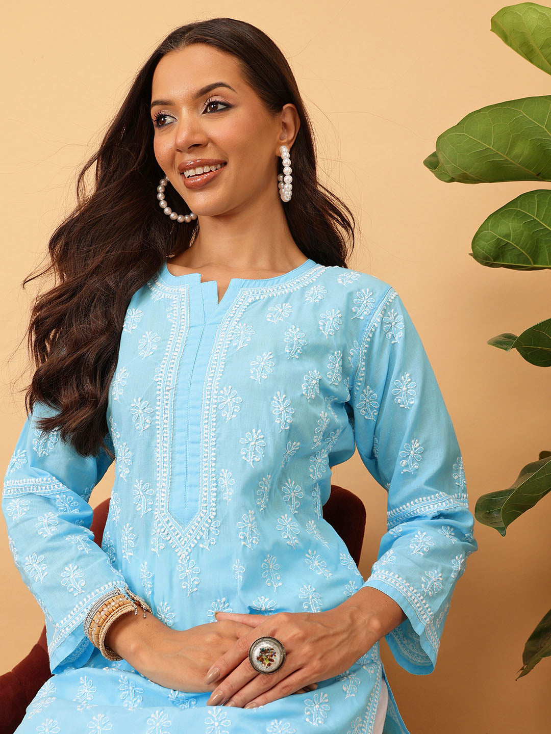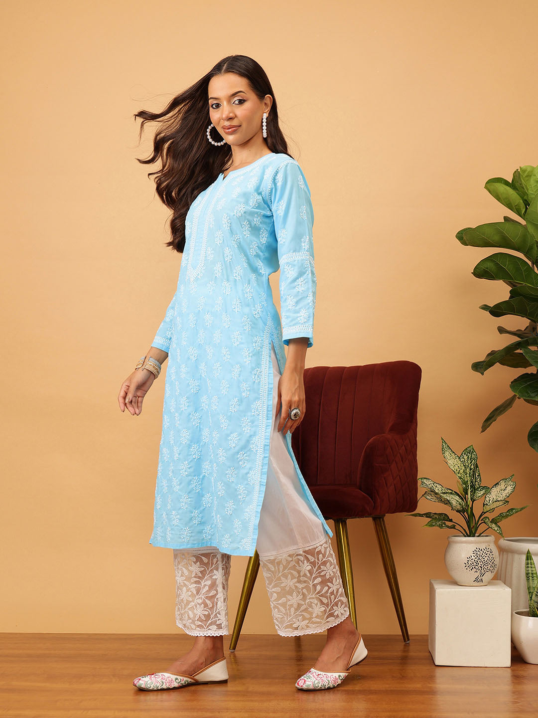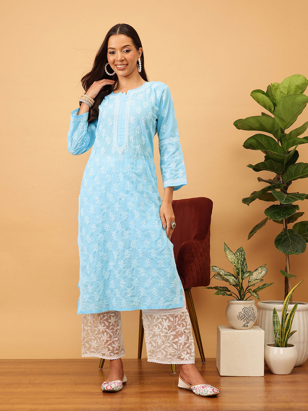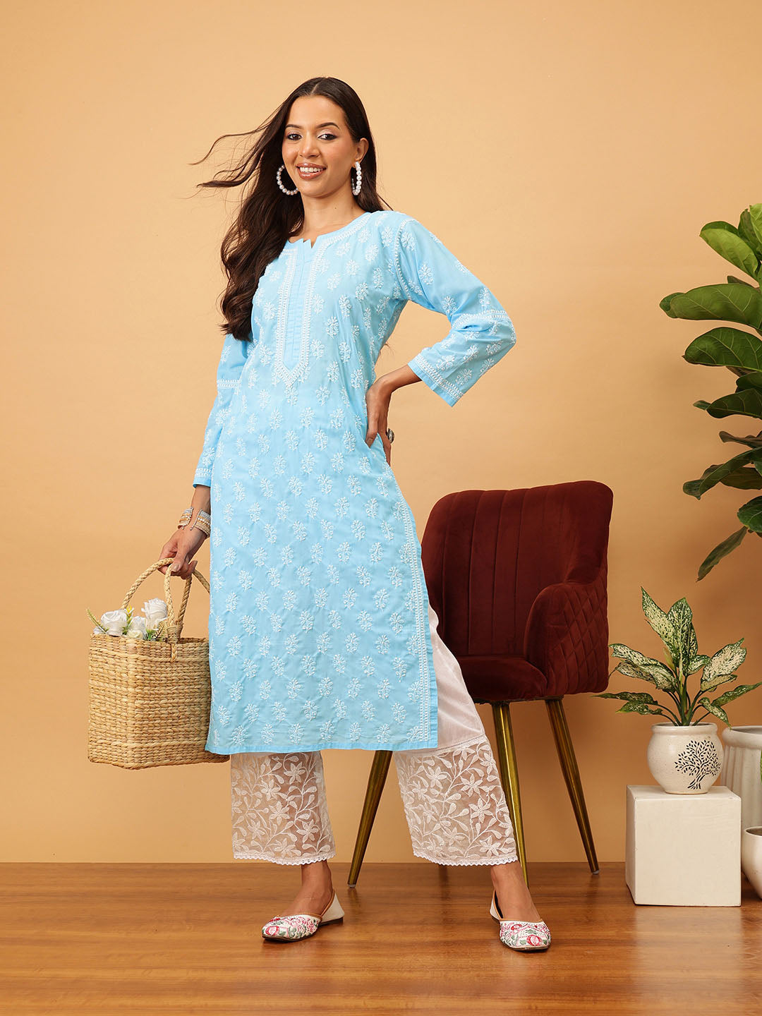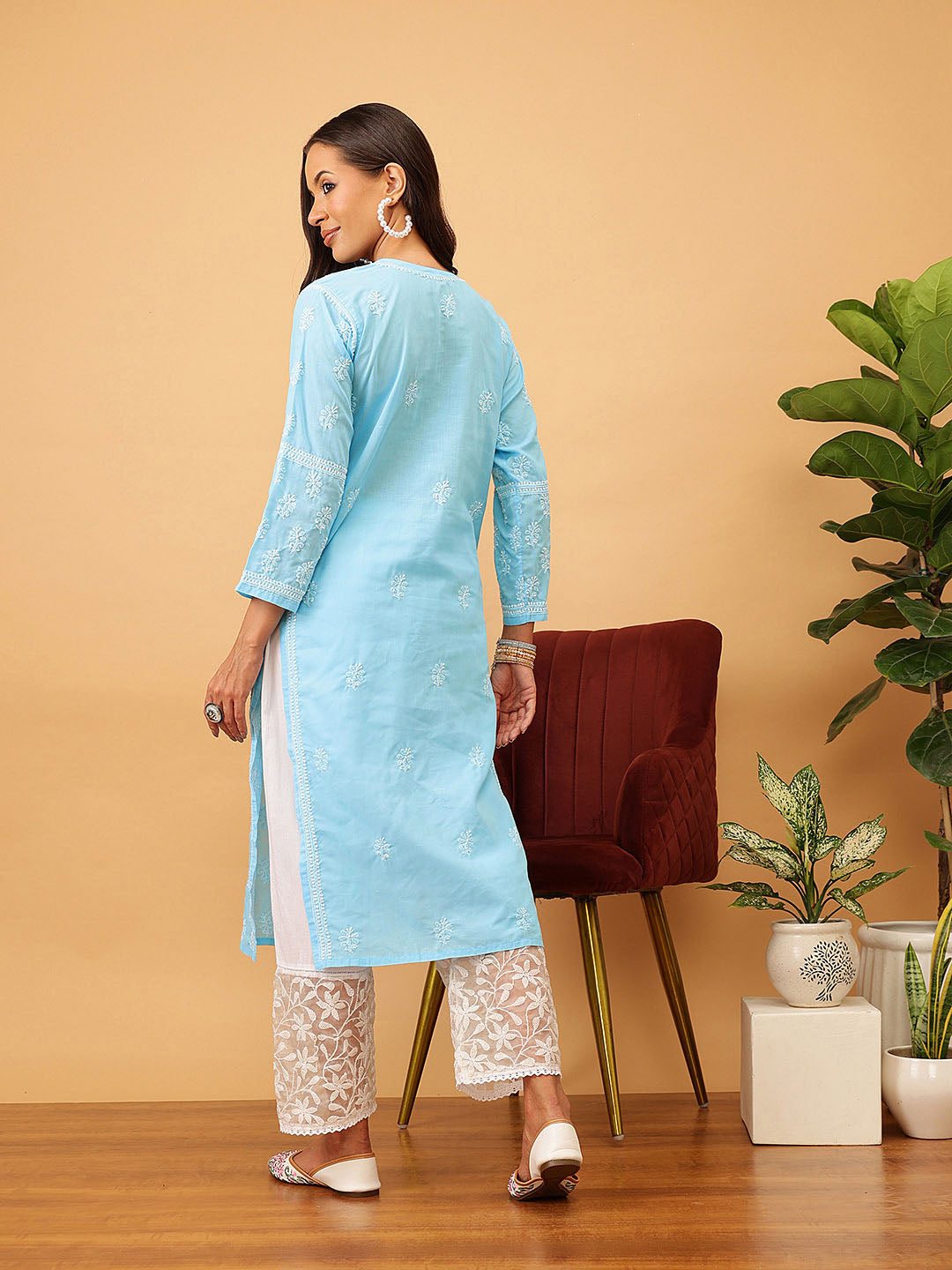 Hand Embroidered Lucknowi Chikankari Blue & White Cotton Kurta