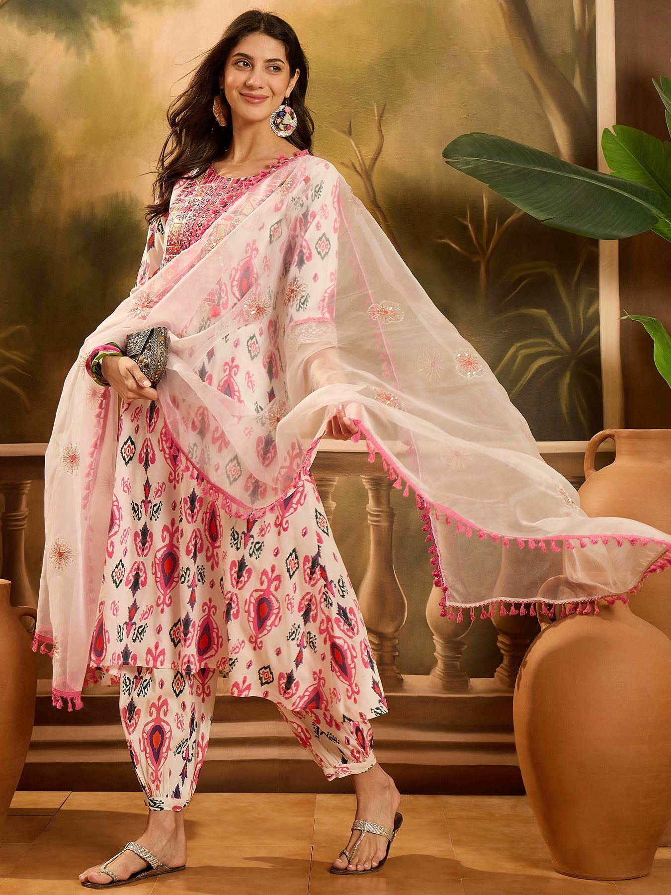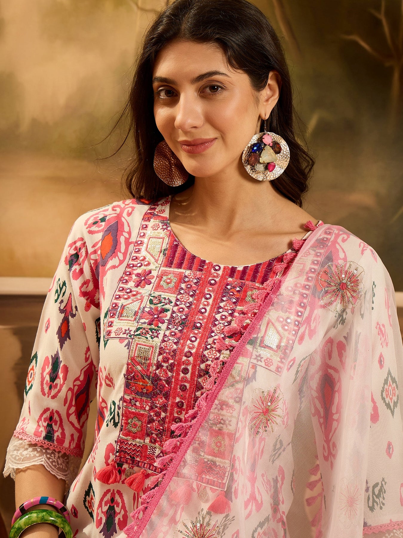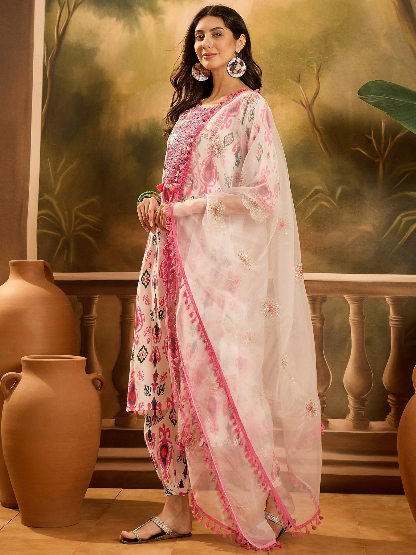 • Kurta Pattern: Ikat Printed Embroidered