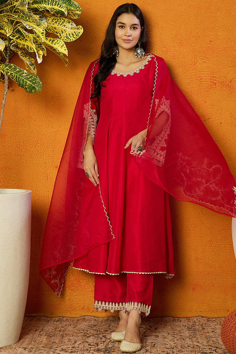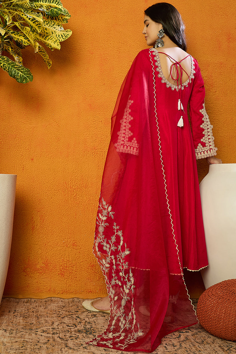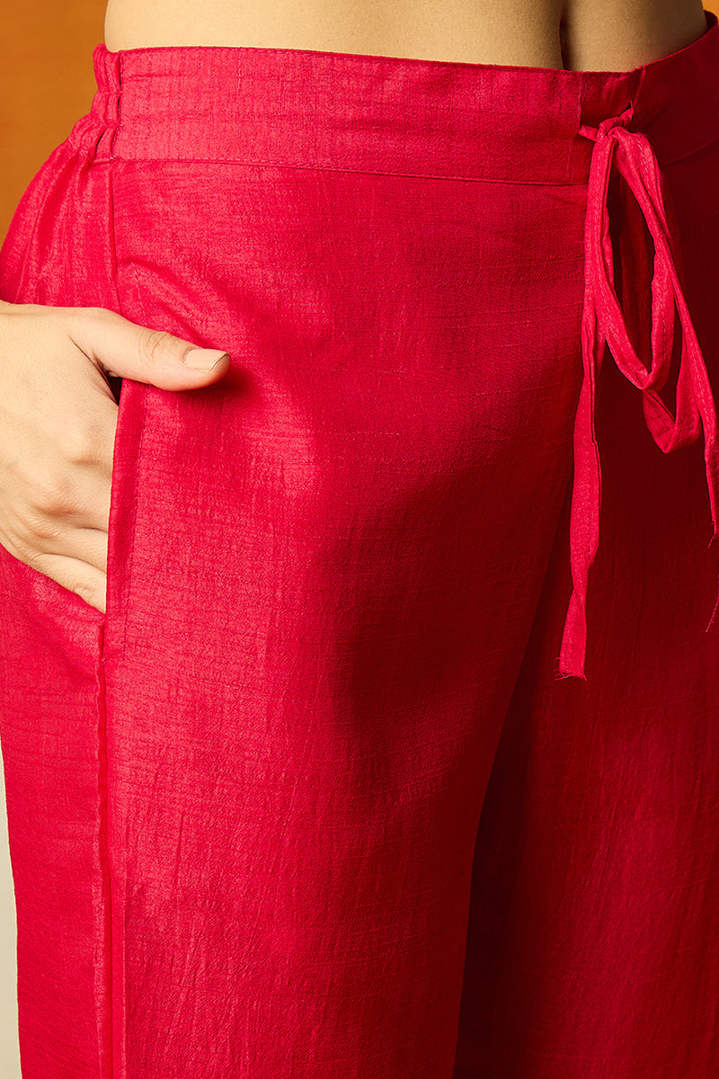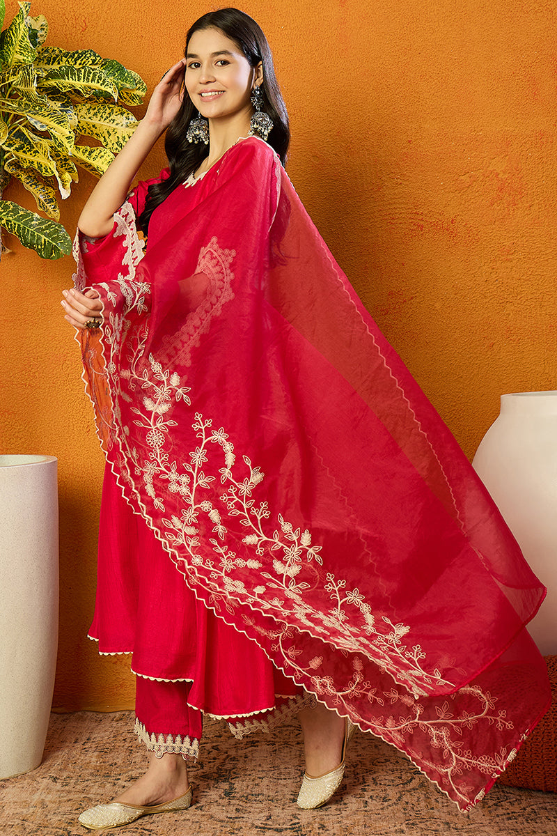 Bold And Beautiful, This Fuchsia Pink Silk Blend Flared Set Combines Vibrant Color With Solid Embroidery On Luxurious Silk Fabric. The Flared Design Creates An Elegant Silhouette, Perfect For Weddings, Celebrations, Or Festive Occasions.