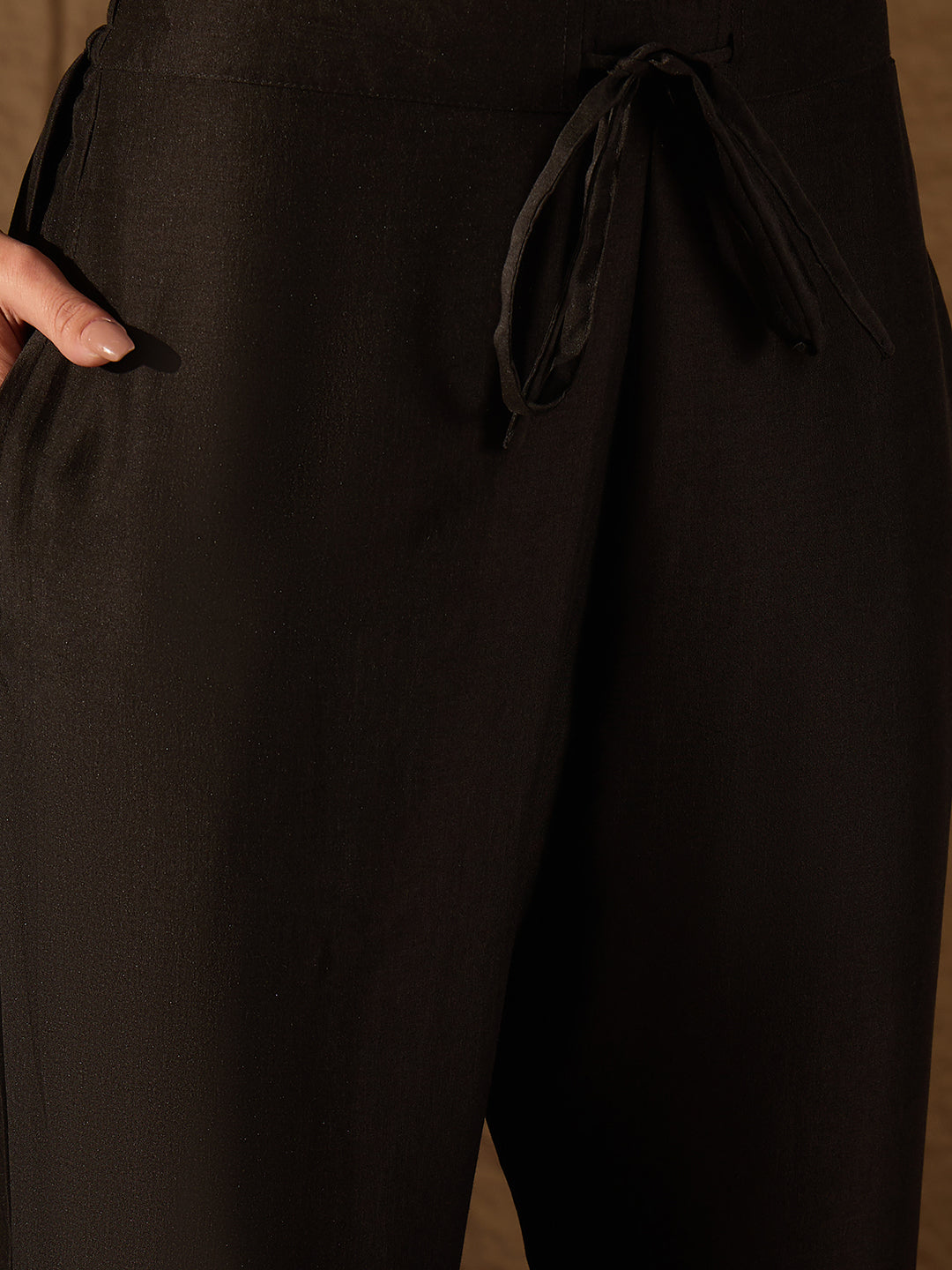 Black Silk Blend Floral Foil Printed Straight Kurta Sets