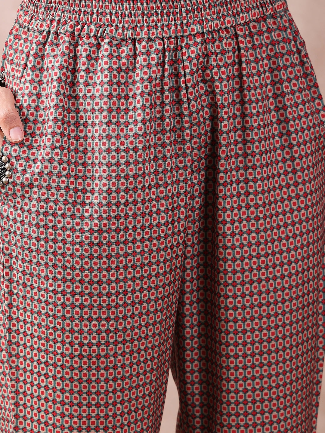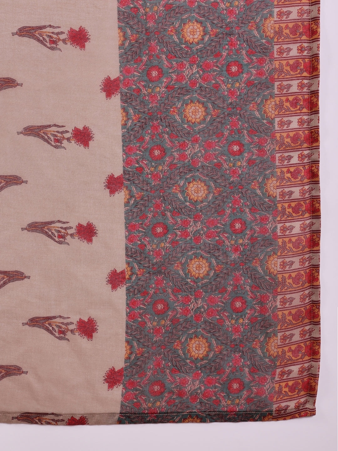 Buy Exclusive Cotton Blend Fabric in this attractive Green Color ready to wear Kurta Set will make sure that the fitting of this beautiful readymade Kurta Trousers With Dupatta Set looks elegant on you. Crafted With, Cotton Blend Bottom Fabric, Printed Pattern With Calf Length Straight Hemline, Mandarin Collar Kurta it is light in weight and will be soft against your skin. Three-Quarter Sleeves Floral Print Pattern With Printed Dupatta Pattern Its unique design and beautiful colour will fetch a lot of second glances as you club it with contrast colored pumps and flashy accessory. NOTE: Dupatta length 2.25 mtr and Width 1.0 mtr Front Length ( Inches ): 46