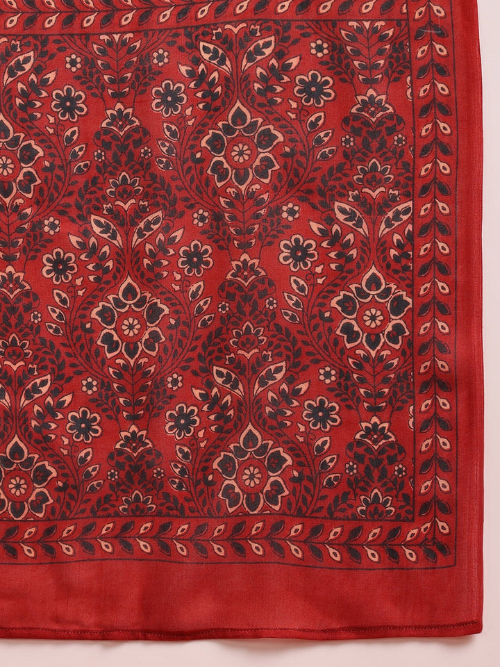 This is a Red Rayon Blend Floral Printed A-Line 3-Piece Kurta Set