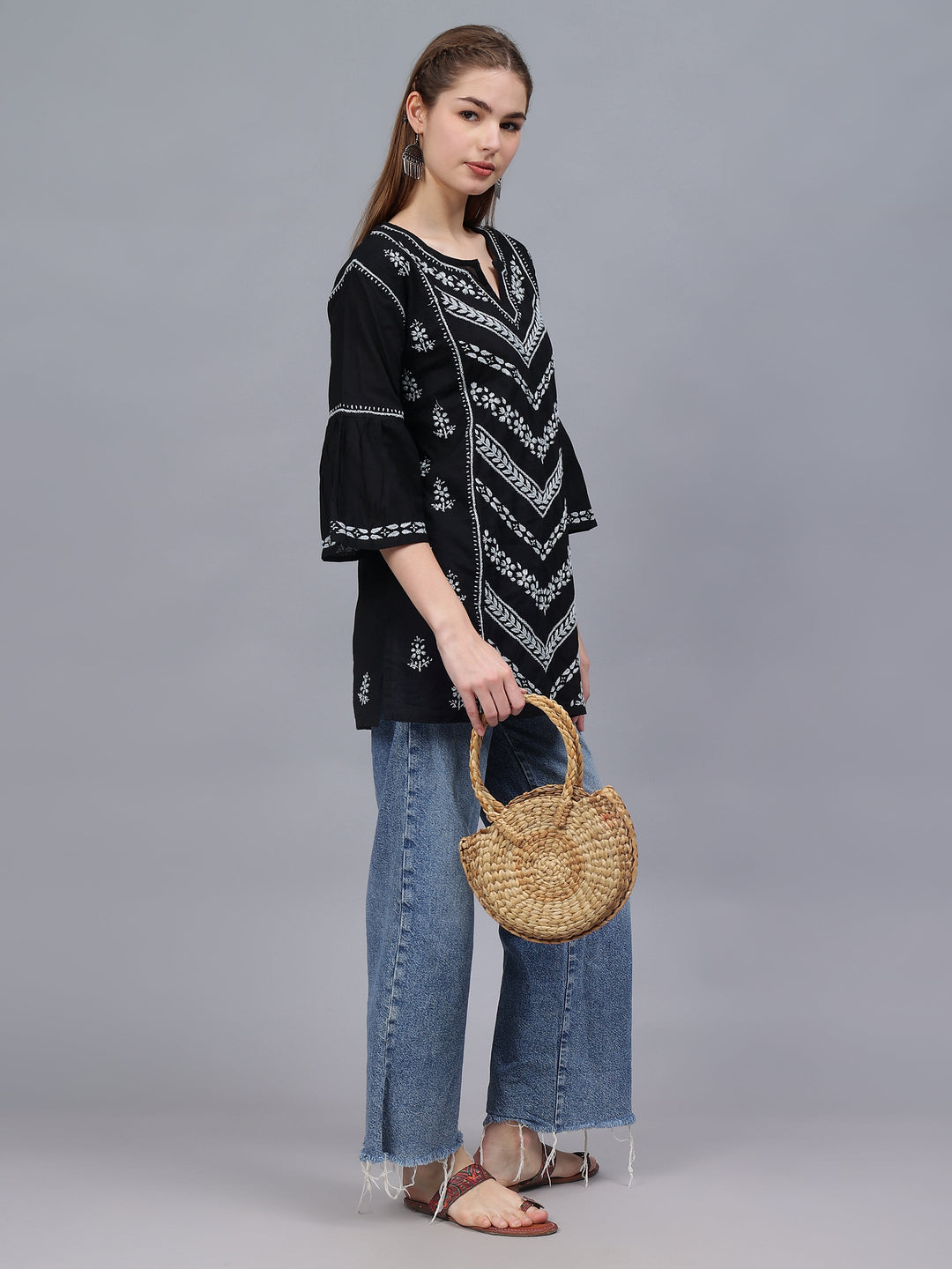 This is a Black Cotton Hand Embroidered Chikankari Straight Tunic