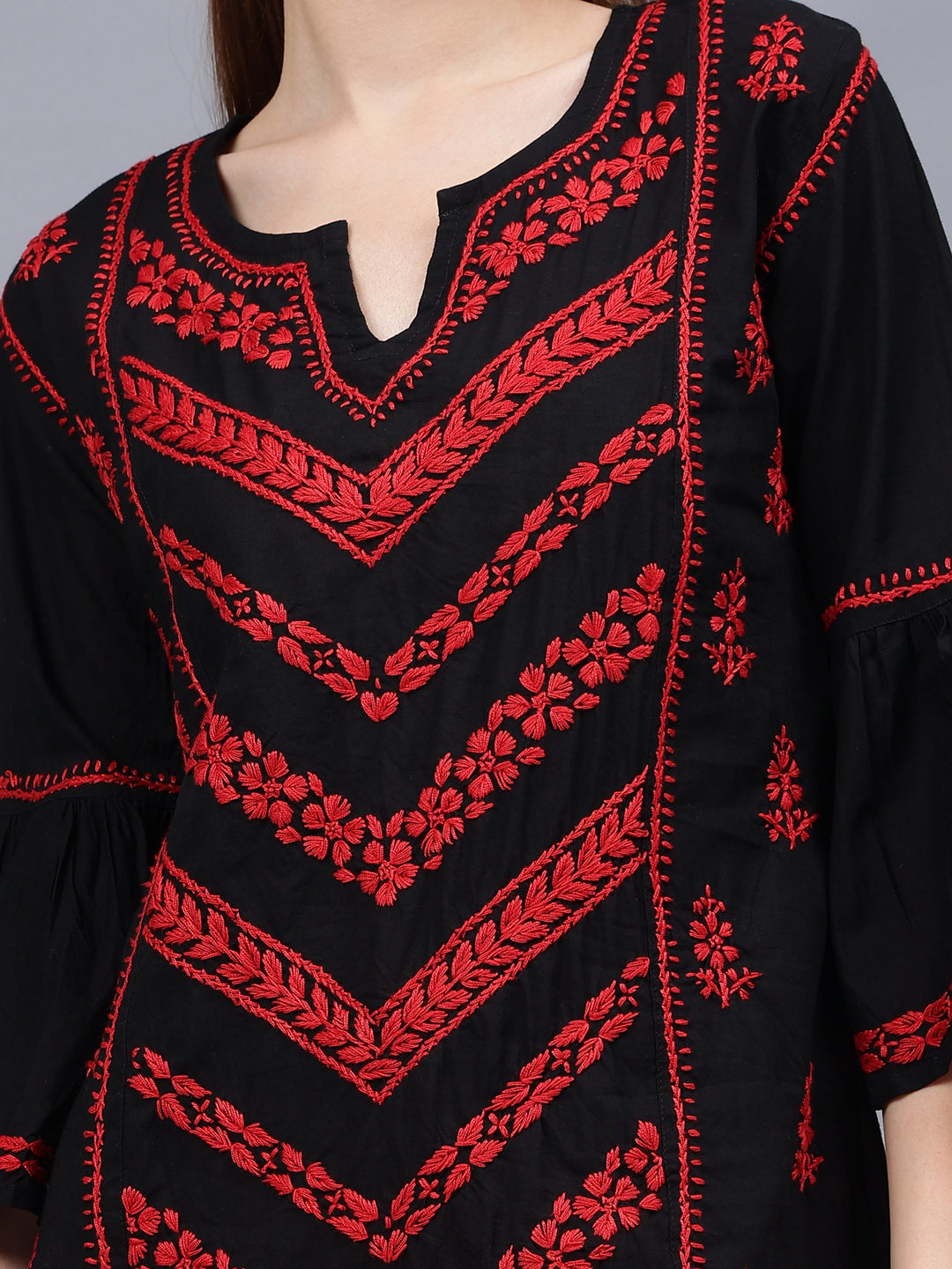 This is a Black Cotton Hand Embroidered Chikankari Tunic