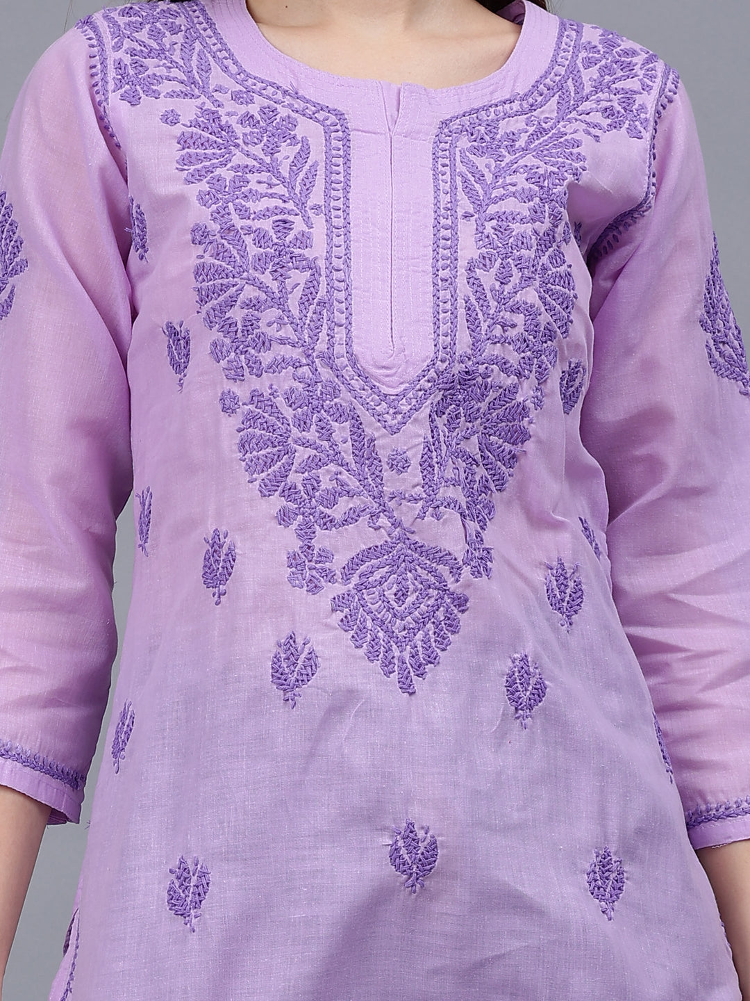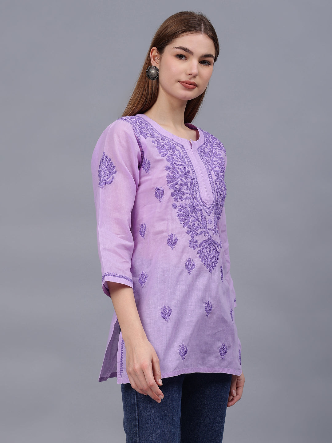 This is a Mauve Cotton Embroidered Chikankari Tunic