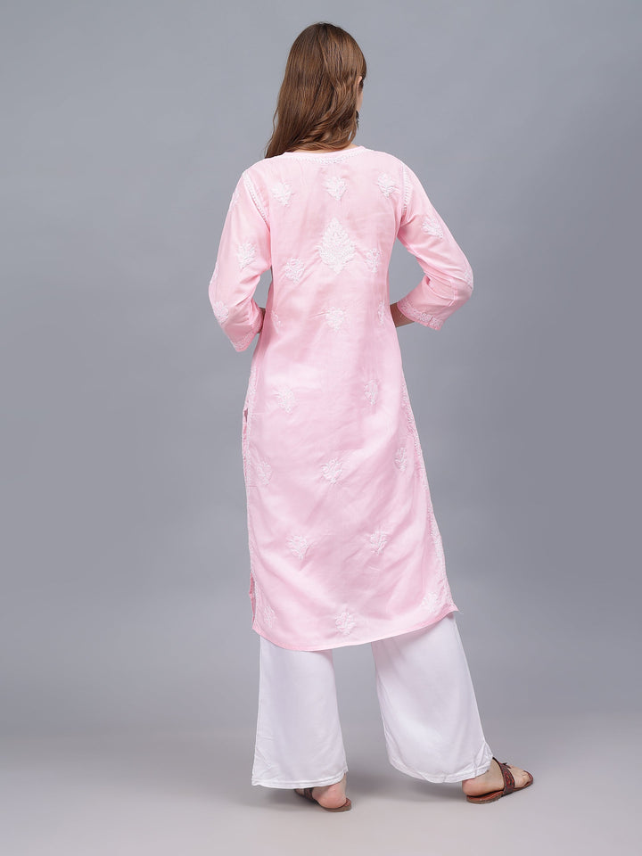 This is a Pink Cotton Embroidered Chikankari Kurti