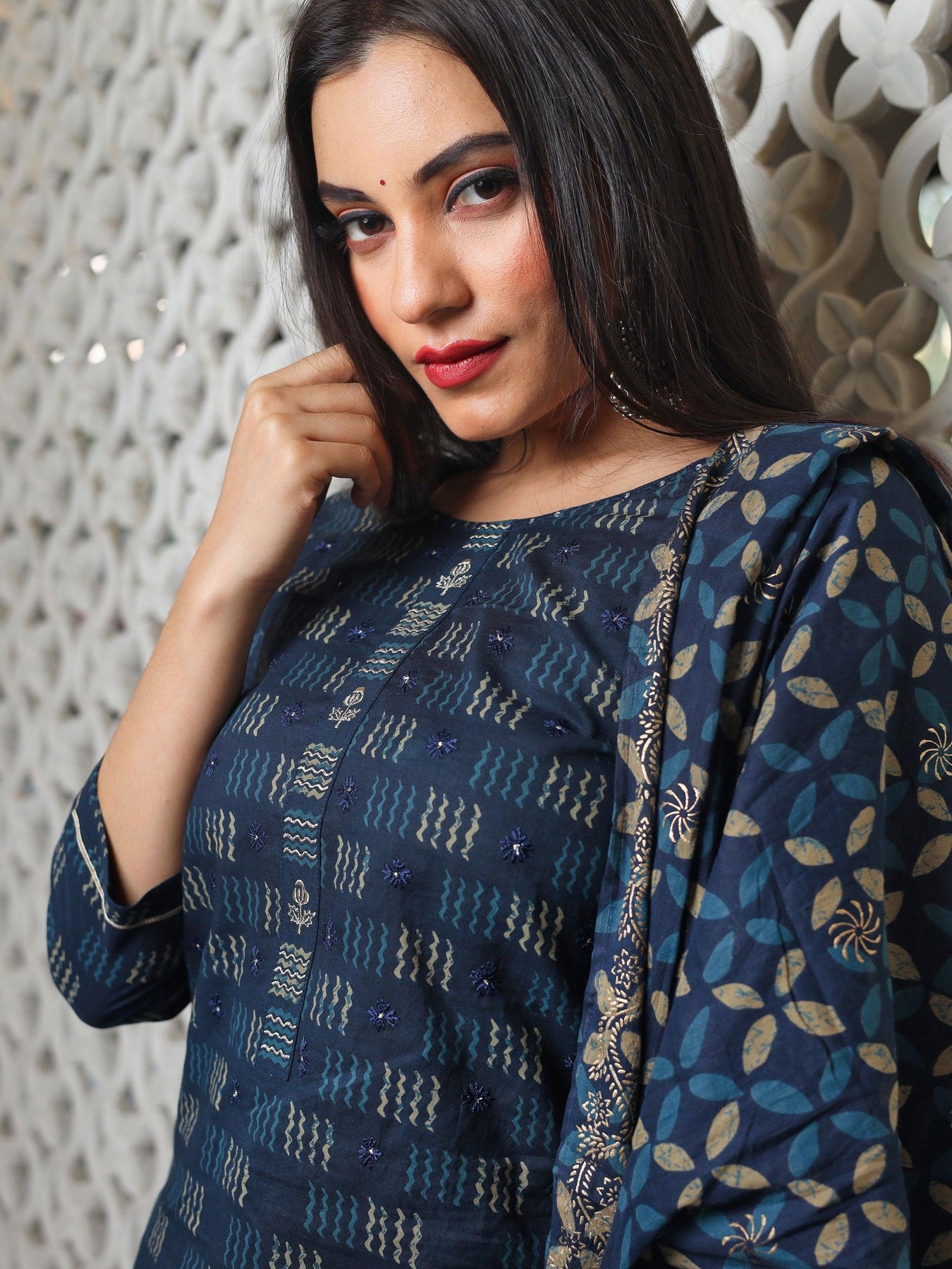 Indigo-Blue-Cotton-3-Piece-Kurta-Set