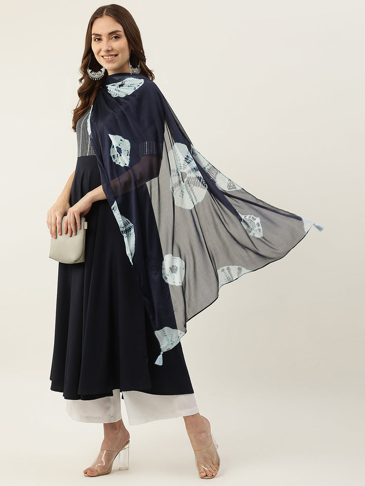 Description: Elevate Your Festive Wardrobe With Lace Work Kurta Set In A Classic Navy Blue. Crafted From Luxurious Poly Crepe, The Kurta Features A Graceful Boat Neck And Flared Half Sleeves, Falling Into A Calf-Length Silhouette That Exudes Sophistication. Complemented By A Delicate Georgette Dupatta, This Set Is Perfect For Both Festive And Party Occasions, Merging Timeless Elegance With Contemporary Style. Kurta Material: Poly Crepe || Dupatta Material: Chiffon Style: Straight Kurta || Calf Length With Half Sleeve Package Contains: Top || Dupatta Styling Suggestion: Pair With Silver Jewelry And Heeled Sandals For A Refined Look Thatss Perfect For Making A Statement At Any Celebration.