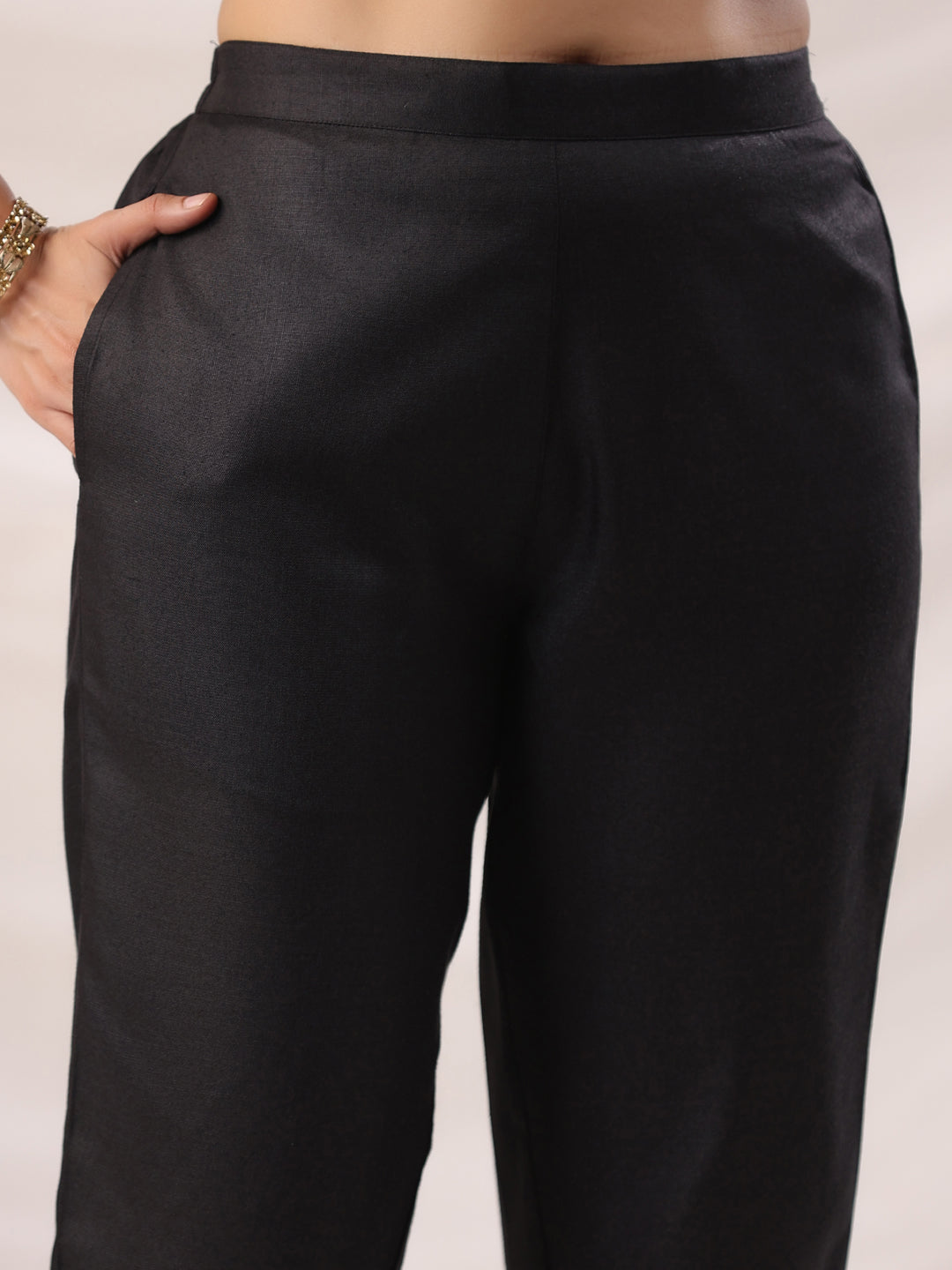 Stay effortlessly elegant in this black cotton blend straight kurta set designed in a sleek solid tone. With matching pants and dupatta, it’s a versatile addition to your ethnic wardrobe.