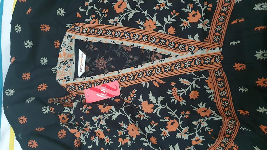 Entice The Onlookers With The Beauty Of Black With This Lovely Dress. To Make You Look Resplendent, There Is A Combination Of Maroon And White That Add Further Sheen To The Black Fabric. The Trendy V Neck Design Will Look Chic In Any Setting And You Will Surely Love The Overall Comfort Factor And Feel Of The Elegantly Crafted Dress. For The Best Effect, Pair This Up With Some Stylish Jhumka Earrings To Dazzle The Observers.