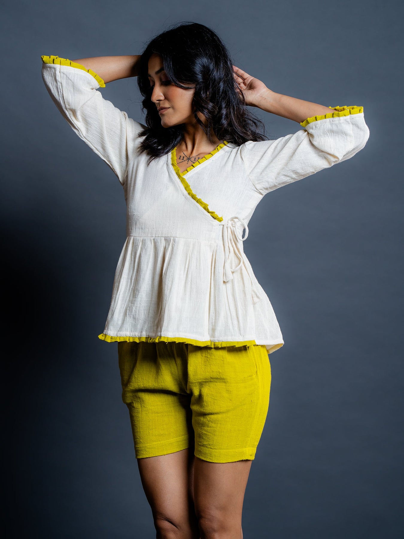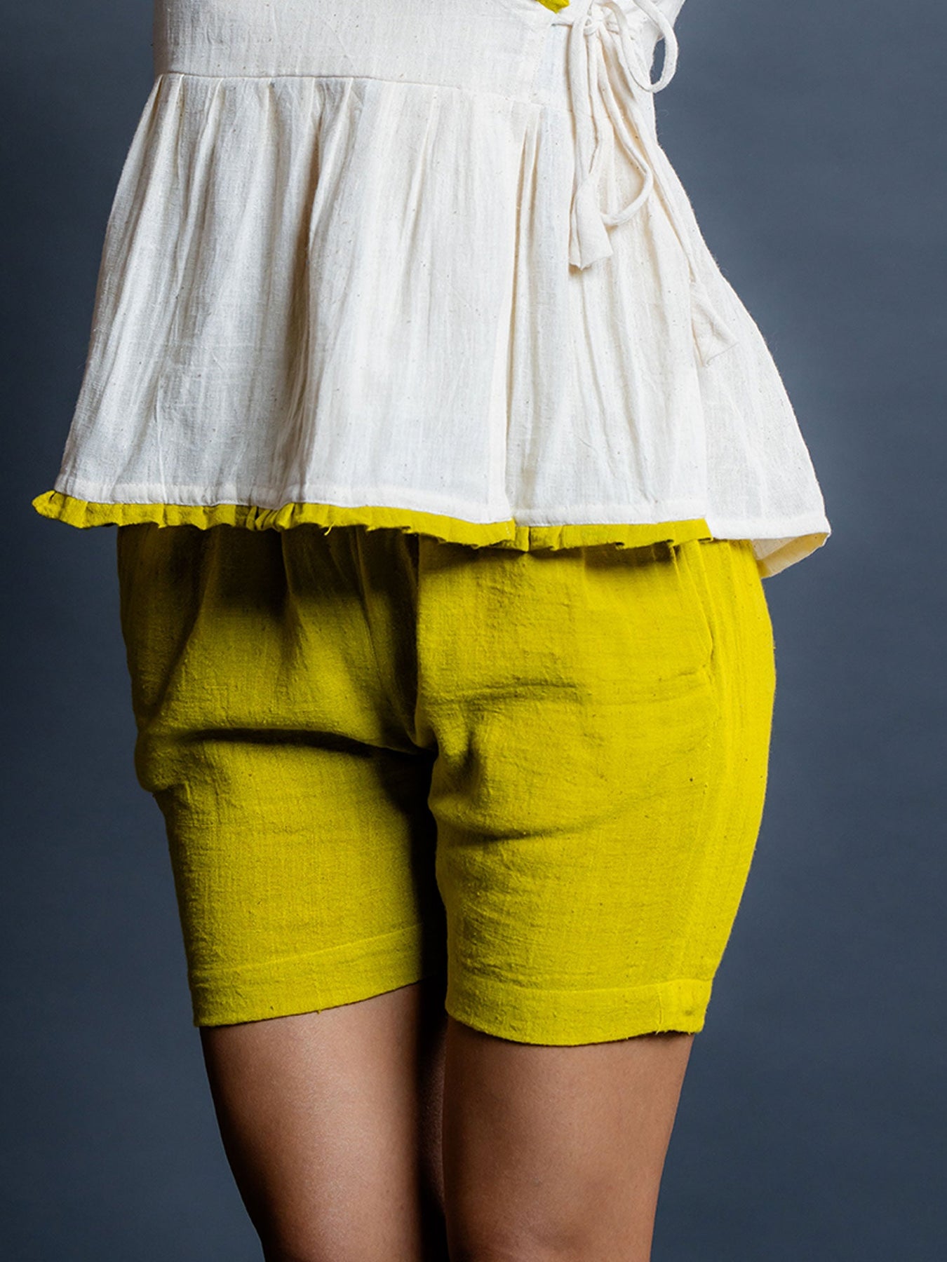 Bright And Breathable, These Yellow Shorts Are Crafted From 100% Cotton With A Straight-Cut Design And Short Length. A Cheerful And Functional Choice For Relaxed Days Or Vacation Wear.