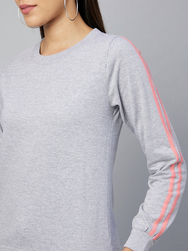 A Light Grey Tracksuit Set With Pink Stripe Accents, Blending Casual Comfort With Sporty Elegance.