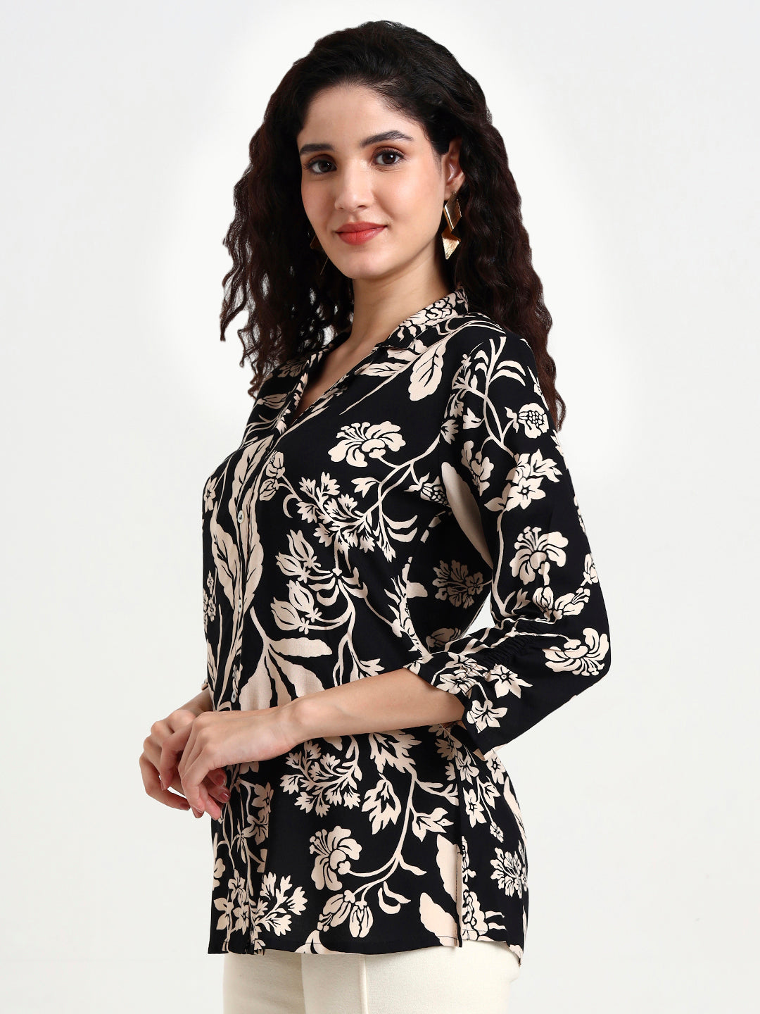 Get a chic and stylish look with the Black Floral Print Rayon Top. Made from high-quality rayon, this top features a beautiful floral print that will elevate any outfit. Shop now and add this must-have piece to your wardrobe!