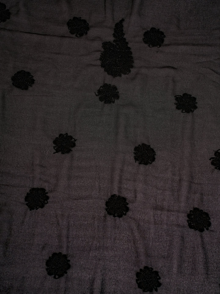 This Black Georgette Chikan Unstitched Suit Piece Offers A Comfortable And Relaxed Silhouette To The Wearer, The Fabric And Embroidery Is Skin Friendly.