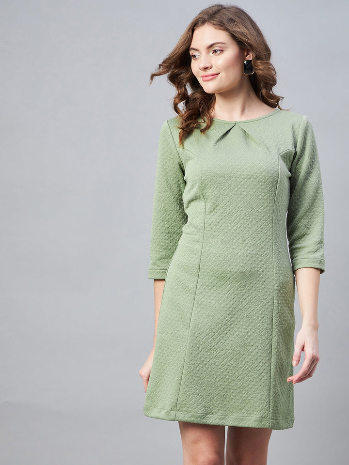 This Is A Olive Polyester Jacquard Self Design Dress -Pattern: Self Design -Sleeve: 3/4Th Sleeves