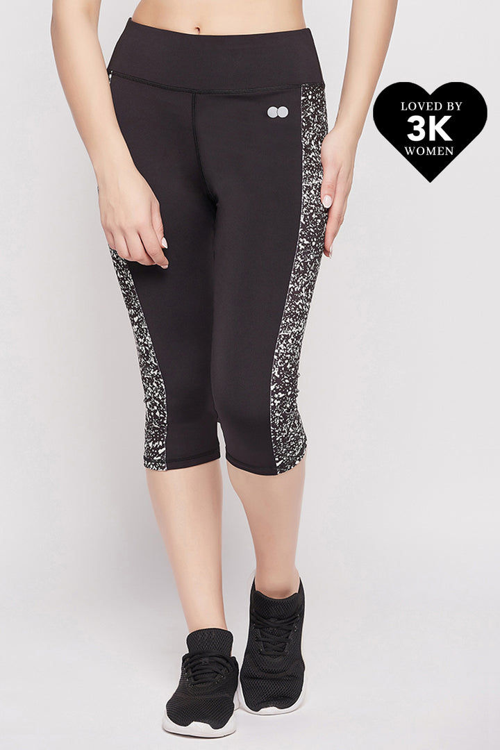 Black High Waist Active Capri Crafted With Soft Poly-Spandex Fabric.Engineered With 4-Way Stretch Fabric That Moves With Your Movement.Quick Dry Technology Helps Wick Away Sweat During An Intense Workout Routine, Keeping You Cool Dry.Crafted With Anti-Static Property To Stop The Tights From Clinging To Your Body.Has Great Elasticity, Is Resistant To Perspiration, And Is Comfortable.Has Broad Elastic Enclosed In A Soft Fabric For Extra Tummy Support.Has Printed Panels On Both Sides.Has Reflective Logo On One Side At Back. Maximises Flexibility, Mobility Performance.Perfect For Cycling, Running, Zumba, Etc.