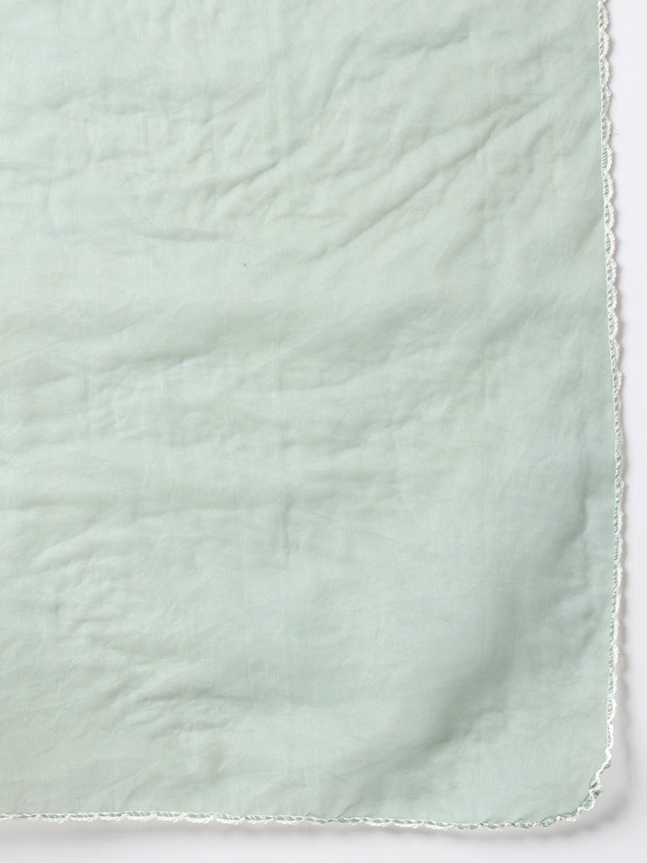 Celebrate Elegance With This Light Green Cotton Kurta Set. Exquisite Lace Detailing And Floral Prints Create A Graceful, Versatile Look. Kurta: Cotton | Pant: Cotton | Dupatta: Organza | Style: Straight Kurta | Length: Knee | Sleeve: 3/4Th