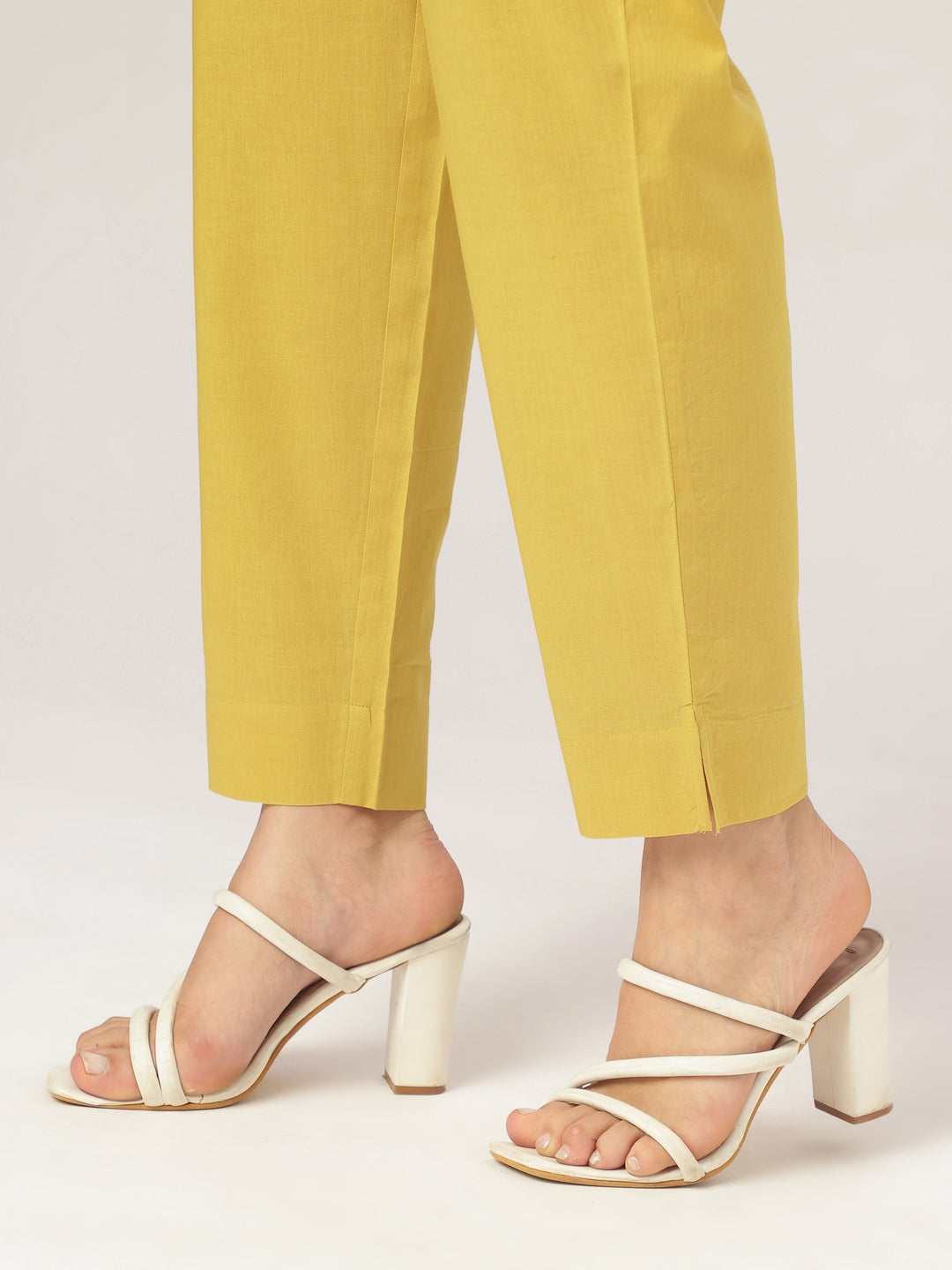 A Vibrant Yellow Cotton Angrakha-Style Kurta With Beautiful Embroidery And A V-Neckline. Designed For Effortless Charm With Matching Narrow Pants And A Bright Cotton Dupatta, Perfect For Daytime Occasions.