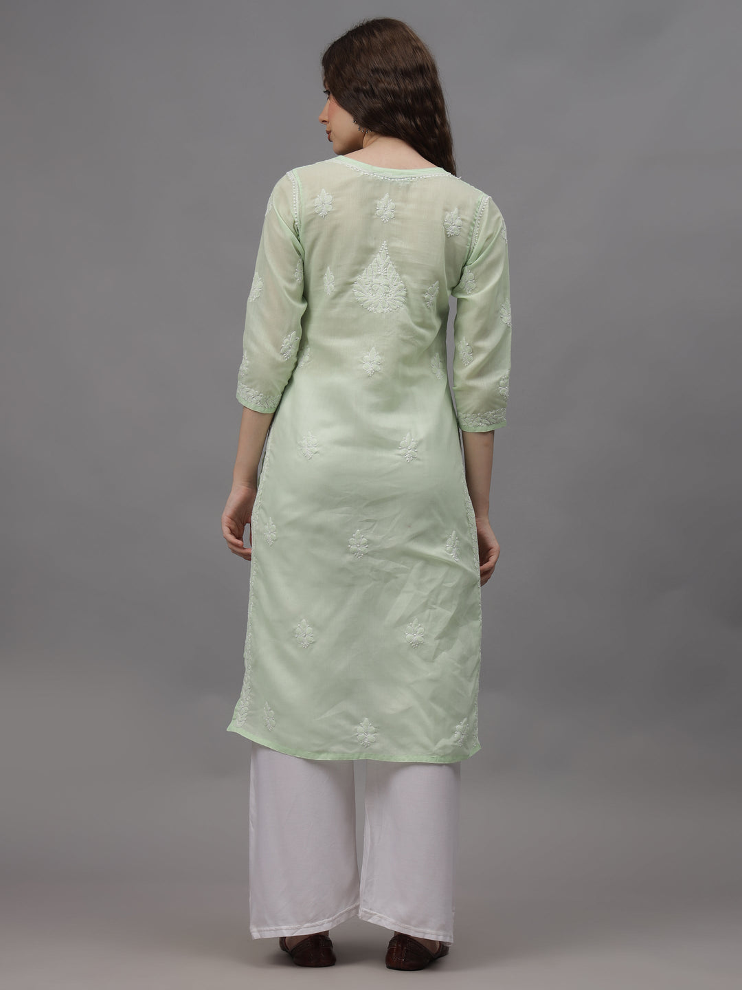 This is a Pista Green Cotton Embroidered Chikankari Kurti